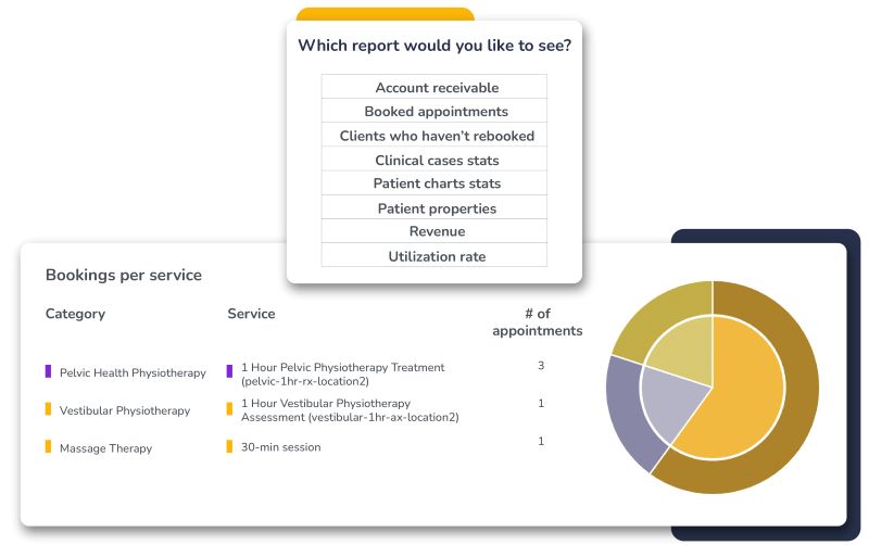 Chart, schedule, invoice, bill, and offer online booking. All from one platform and with one low monthly fee. View and generate a wide range of useful reports to keep your business running smoothly.