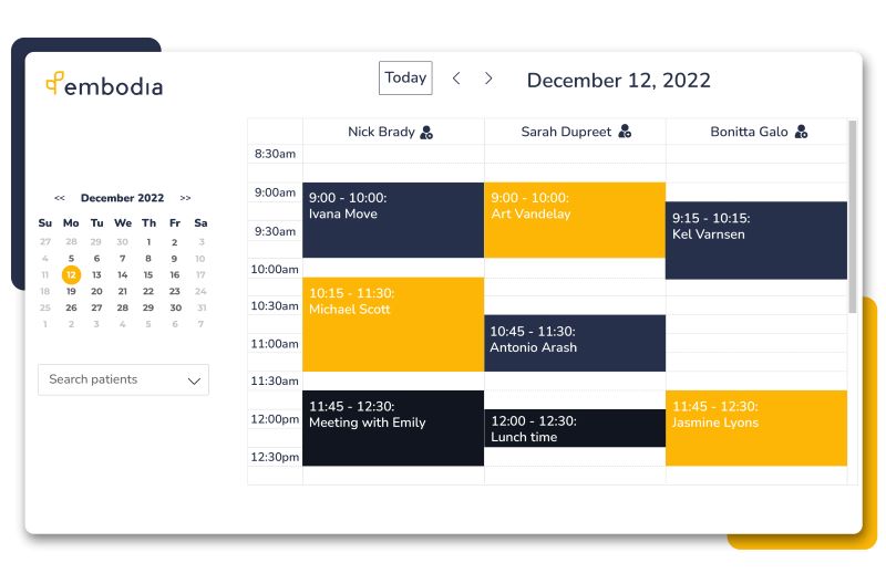 I have been using Embodia for over a year now for our clinic and it's been great. It's so easy to use and customize. The clinic admin login lets me see everything I need to help things run smoothly. This includes viewing and editing schedules and availabilities, accessing clinic settings, patient information, and billing. The customization of services, flexible online booking, and questionnaires have been invaluable. It's both easy and efficient to use!