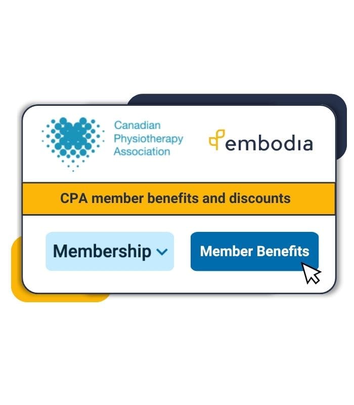 The Canadian Physiotherapy Association (CPA) and Embodia have partnered to bring CPA members many perks, such as discounts on courses, webinars, memberships, and more!