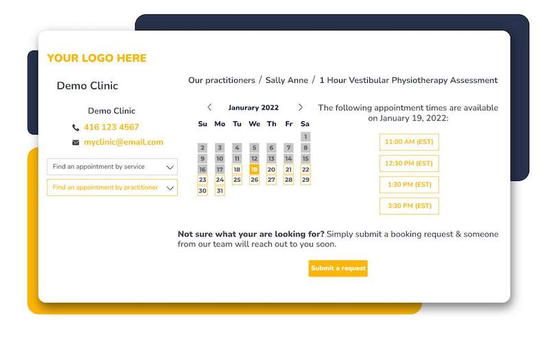 Flexible and customizable. Set up your own custom-branded online booking page. Select which services can be booked online, enable booking requests to capture more new patients, restrict the number of time slots shown, cluster time slots to increase efficiency, and collect payment on booking.